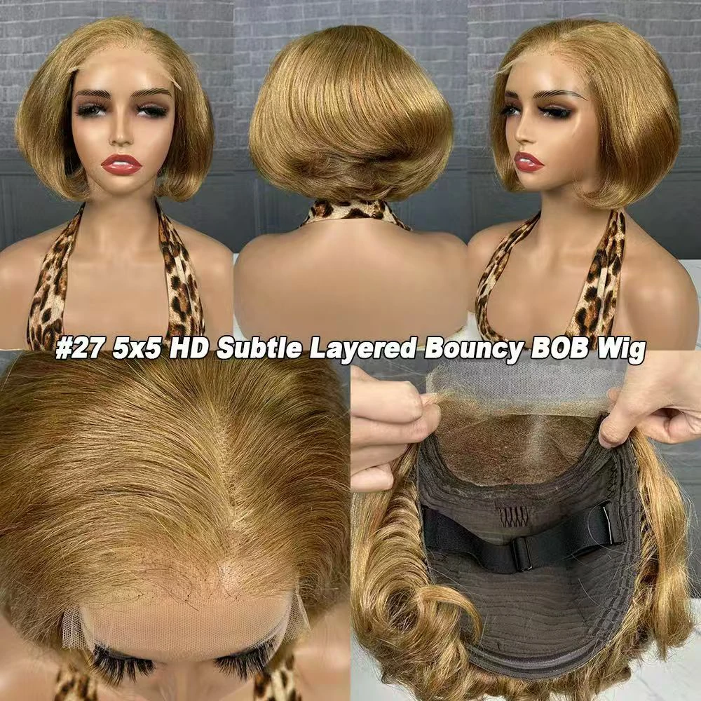 2.Bob wig wear and go 3. 5×5 HD Bouncy Bob Wig 4. Natural/#2 /#27 /T1B-4 Color 5.With Luxurious and Healthy Glow |