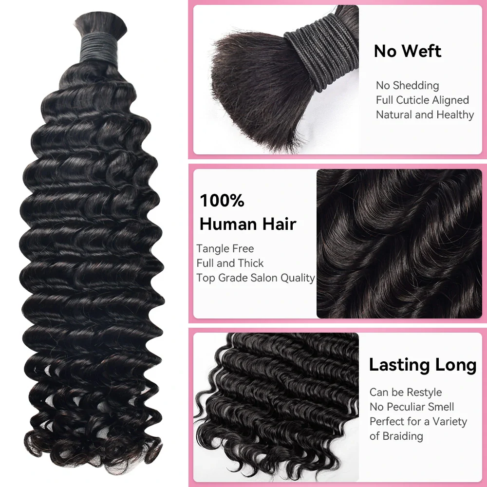 Upgrade your look with our high-quality Crochet hair deep wave. Made from 100% unprocessed human hair, these Bulk hair perfectly match natural hair textures, giving you a fuller, more authentic appearance.